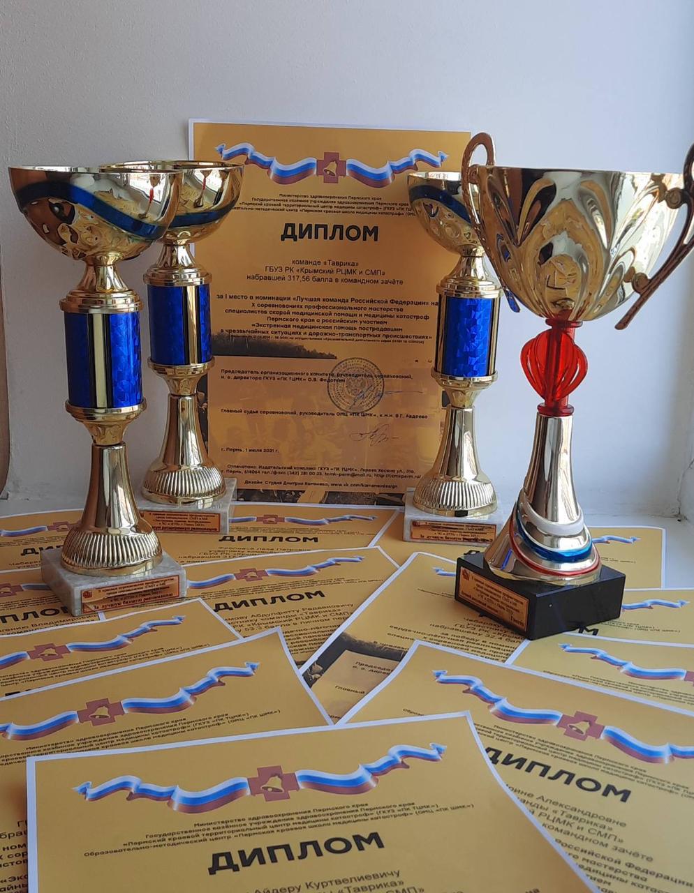Команда ГБУЗ РК «Крымский республиканский центр медицины катастроф и скорой медицинской помощи» заняла первое место среди команд Российской Федерации на Х соревнованиях профессионального мастерства среди специалистов скорой медицинской помощи и службы медицины катастроф «Экстренная помощь пострадавшим в ЧС и ДТП», которые проводились с 30.06.2021 года по 02.07.2021 года в г. Перми ГКУЗ Пермского края «Пермский краевой территориальный центр медицины катастроф».